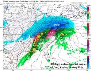 Snow should be falling heavily on Sunday morning/mid-day in the DC-to-Philly-to-NYC corridor with very cold conditions…some wild weather indeed for several hours. There can be sleet across central and southern Virginia at mid-day and freezing rain in Kentucky as a thin layer of slightly above freezing air advances slowly to the north with its farthest […]